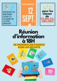 Vendredi 12 septembre à 18h: Classes de PS, MS, GS, CM1 et CM2