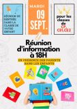 Mardi 9 septembre à 18h : Classes de CP, CE1 et CE2