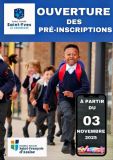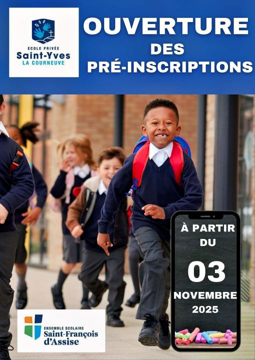 Les pré-inscriptions 2026/2027 pour une nouvelle inscription à Saint Yves débuteront le lundi 03 novembre 2025.